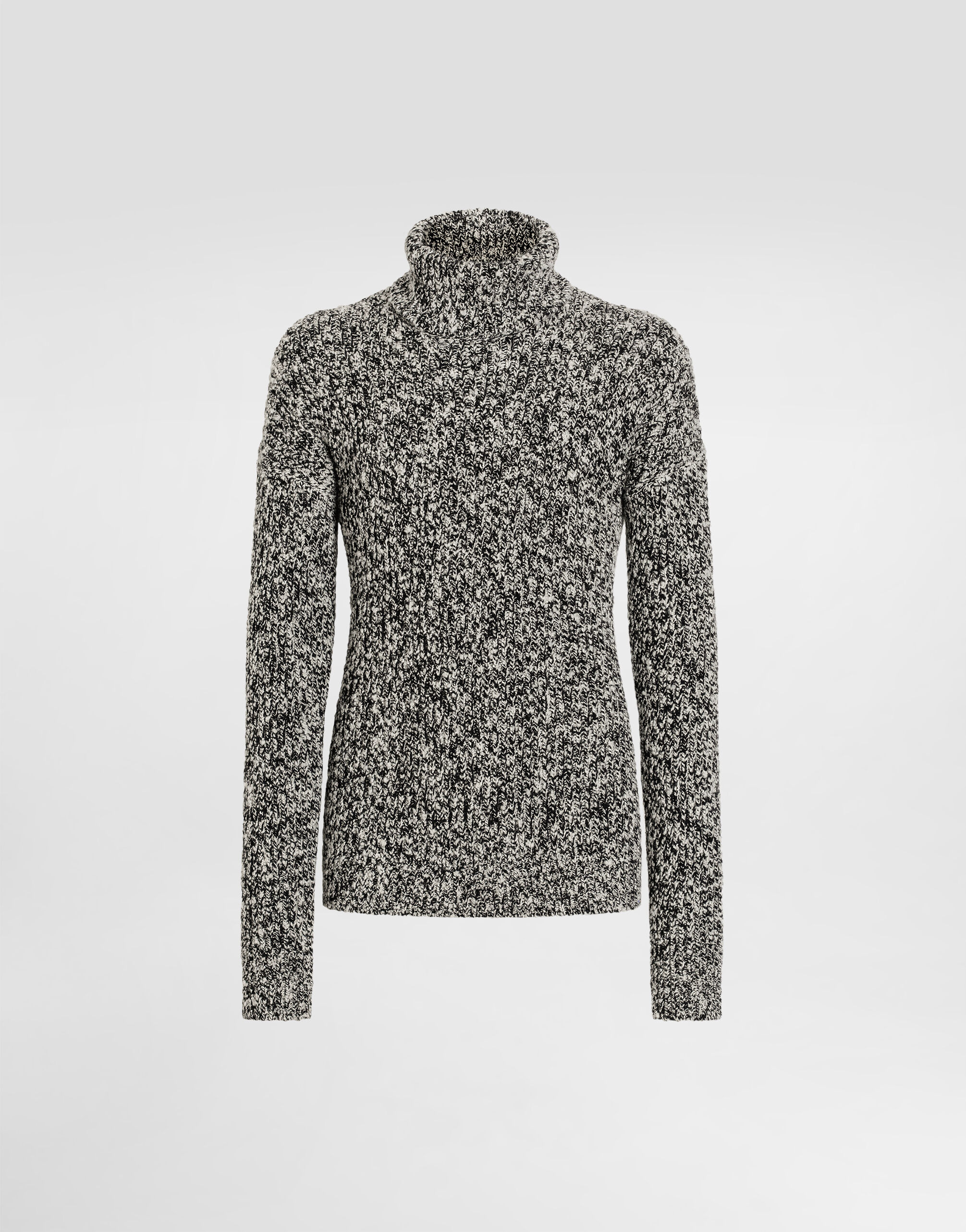 The scene is set for Dolce&Gabbana's distinctive and iconic aesthetic codes in the Collection from Men's Fall/Winter 2025 Fashion Show. The evening lights up with radiant brooches and is enriched with classic suits and blazers of timeless elegance. This oversized turtleneck is ideal for a sophisticated and comfortable look. Perfect for facing the coldest days in style. Wool blend turtleneck pullover: • Multi-colored • Long sleeves • Bottom width 70 on size 48 IT • The model is 185 cm tall and wears a size 48 IT • Made in Italy External Composition: 96% Virgin Wool, 4% Polyamide