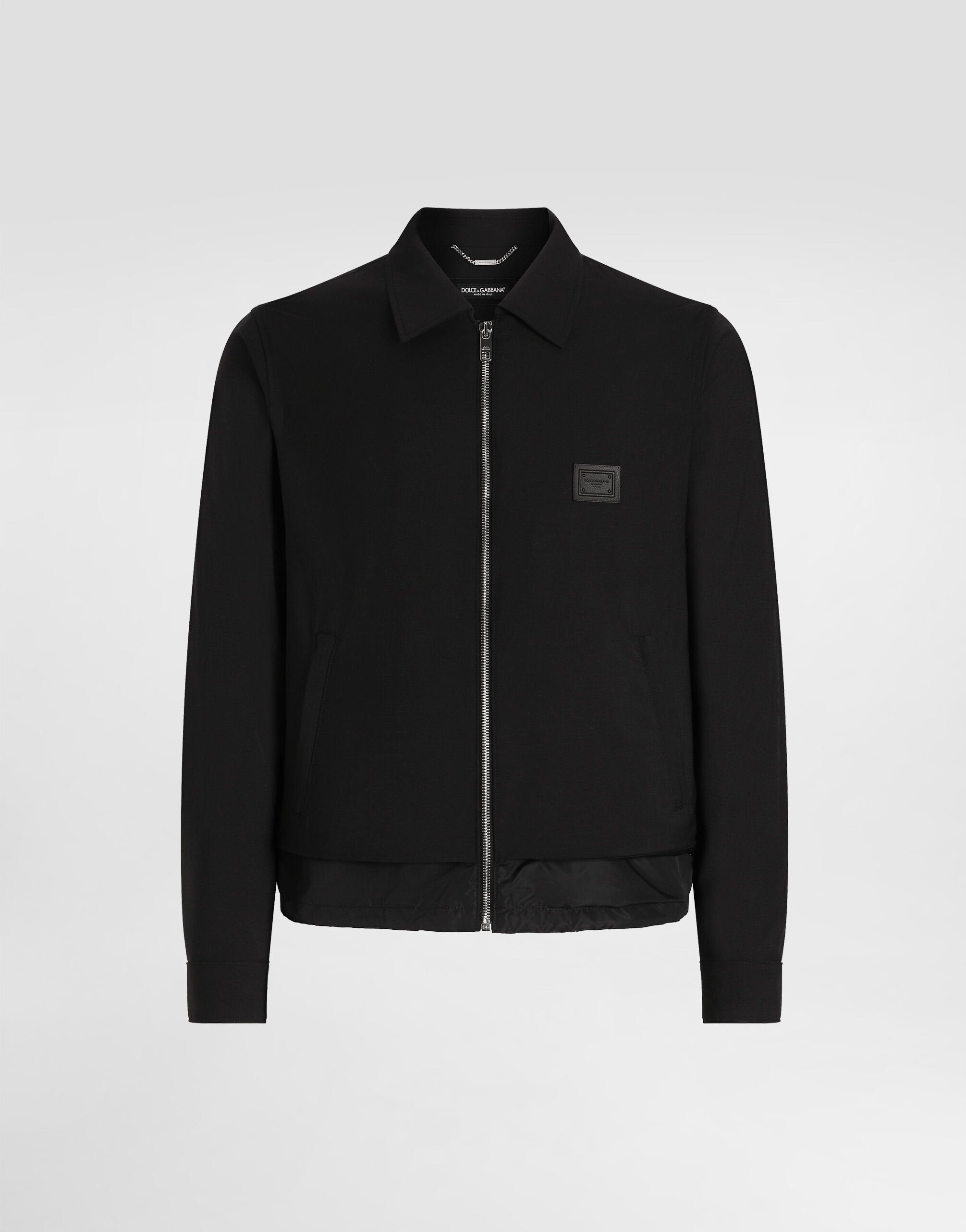 A versatile and functional jacket for the modern man, perfect for facing the coldest days with style and comfort. Wool canvas jacket: • Black • Shirt collar • Central zipper • Lined • The model is 185 cm tall and wears a size 48 IT • Made in Italy External Composition: 48% Wool, 34% Polyester, 15% Polyamide, 3% Elastane Internal Composition: 44% Viscose, 35% Polyamide, 21% Polyester