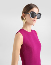 The Everyday Women's Collection reimagines contemporary daily wear with Dolce&Gabbana's signature style codes. Iconic fabrics mix with standout details like embroidered flowers, crystals, and jewel buttons, infusing elegance into every look. Gray animal print accented with green and purple, hyper-geometric jewelry, voluminous shapes and transparencies add unique touches. Men's tweed is reinvented with graphic twists, creating distinctive pieces that reflect refined sensuality. Wool crepe calf-length sheath dress: • Purple • Round neck • Sleeveless • Stretch silk satin lining • Rear zipper and hook-and-bar fastening • The piece measures 65 cm from the waist down on a size IT 40 • The model is 175 cm tall and wears a size IT 40 • Made in Italy External composition: 100% Wool Internal composition: 92% Silk 8% Spandex