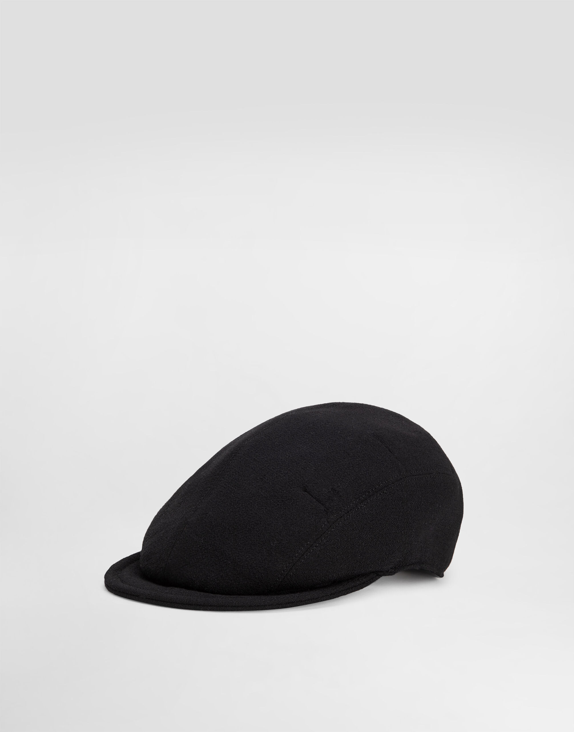This hat represents timeless elegance and Italian craftsmanship, perfect for adding a touch of class to any outfit. Wool crepe cap with DG coin: • Black • Semi-hidden visor • Made in Italy External Composition: 100% Wool Internal Composition: 100% Silk