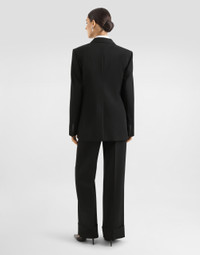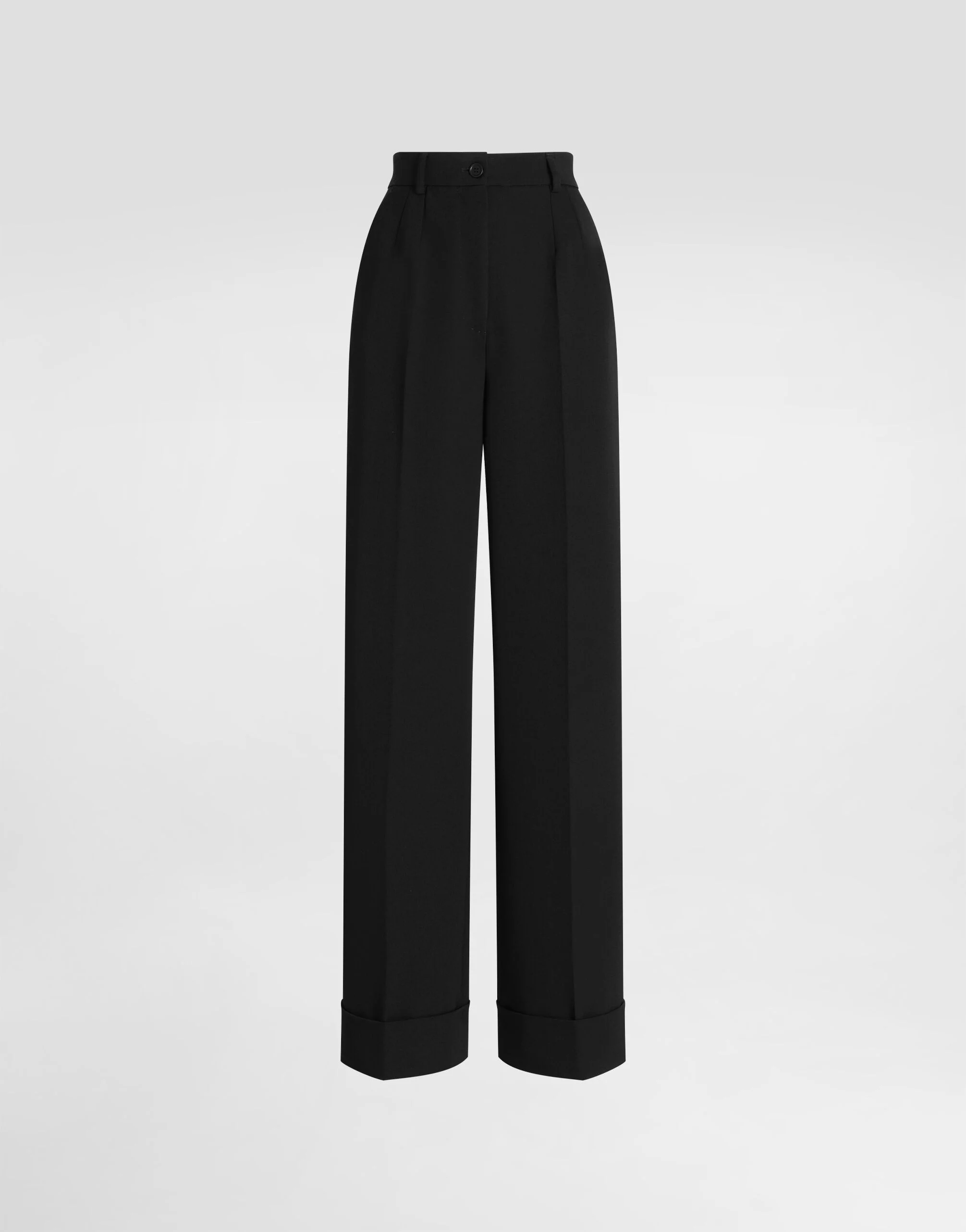 These wool gabardine trousers are the epitome of elegance and comfort, perfect for a sophisticated and timeless look. Wool gabardine trousers: • Black • Straight leg • Dolce waist • Two front pleats • French pockets • Double pleats at the back waist with welt pockets with buttonhole and button • 8 cm high turn-up hem • Inseam length 87 cm on size 40 IT • Leg opening 30 cm on size 40 IT • The model is 175 cm tall and wears size 40 IT • Made in Italy External Composition: 100% Virgin Wool