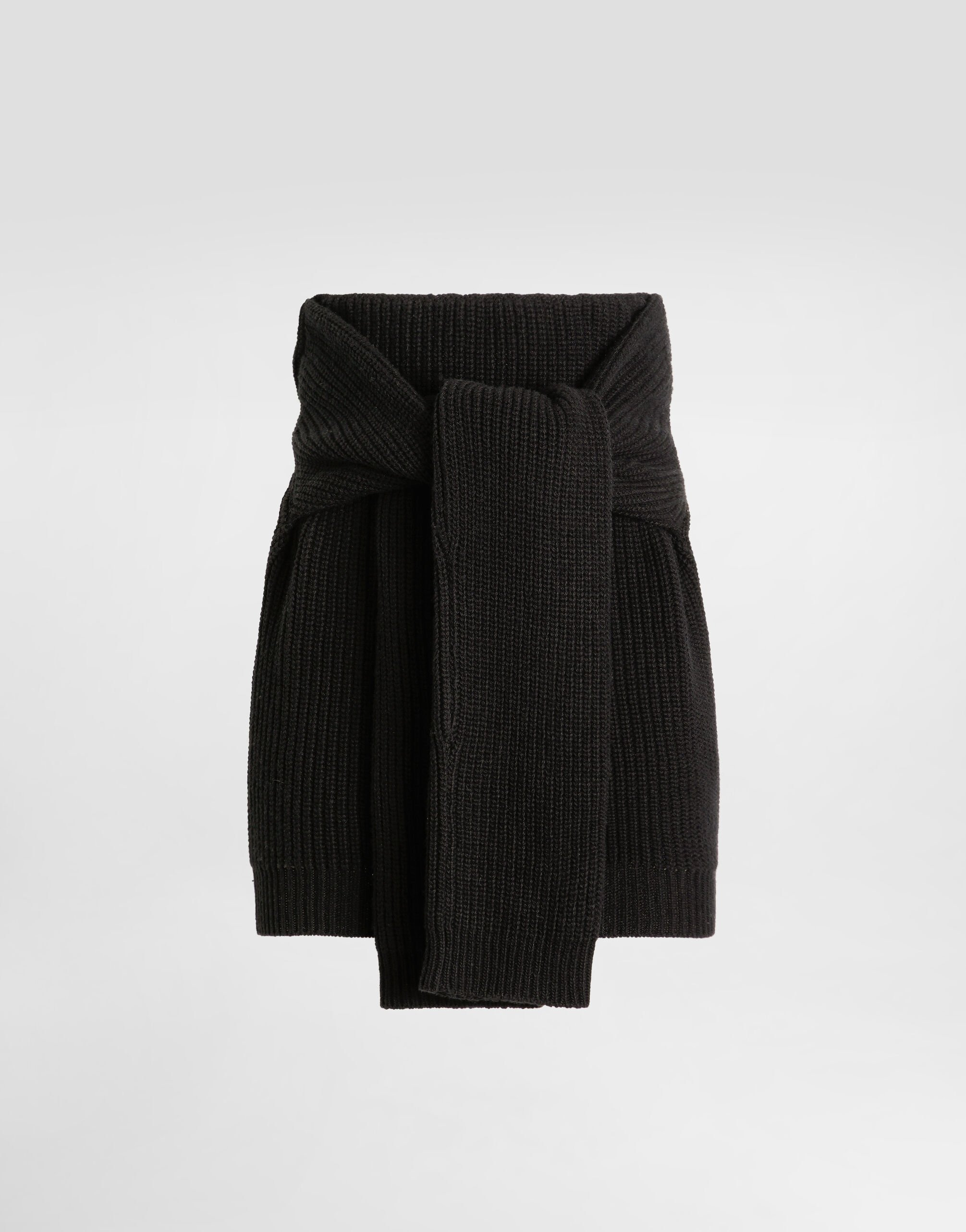 In the Fall/Winter 2025 Fashion Show Collection, shearling jackets, in fur-free versions, reveal slip dresses and create contrast' plays while denim welcomes fabric or Leo print inserts. Sweatshirts are the result of long experimentation with volumes. Evening looks become precious thanks to dresses with special embroideries and luminous touches of sequins and crystals. Sheepskin inserts also unite hats, shoes, and bags, including those with pockets. This wool skirt is an essential piece for any woman's wardrobe, combining elegance and comfort thanks to its fine workmanship. Perfect for the colder seasons, this skirt offers a timeless and versatile style. Wool knitted skirt: • Black • The model is 175 cm tall and wears size 40 IT • Made in Italy External Composition: 100% Virgin Wool