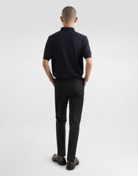 Wool polo-shirt with metal tag featuring the Dolce&Gabbana logo: • Blue •Regular fit •Button fastenings •Short sleeves •14-gauge plain knit •The piece measures 68 cm from the shoulder seam on a size IT 48 •The model is 185 cm tall and wears a size IT 48 •Made in Italy Care And Details External composition: 100% Wool