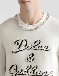 This long-sleeved crew neck pullover is an essential item in a man's wardrobe, perfect for any occasion thanks to its classic design and quality materials. Wool pullover with intarsia: • White • Crew neck • Long sleeves • The model is 185 cm tall and wears a size 48 IT • Made in Italy External Composition: 100% Virgin Wool