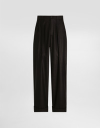 The scene is set for Dolce&Gabbana's distinctive and iconic aesthetic codes in the Collection from Men's Fall/Winter 2025 Fashion Show. The evening lights up with radiant brooches and is enriched with classic suits and blazers of timeless elegance. These trousers represent timeless elegance, ideal for the man looking for a refined and versatile style. Perfect for formal occasions and workdays. Wool trousers: • Black • The model is 185 cm tall and wears a size 48 IT • Made in Italy External Composition: 100% Wool