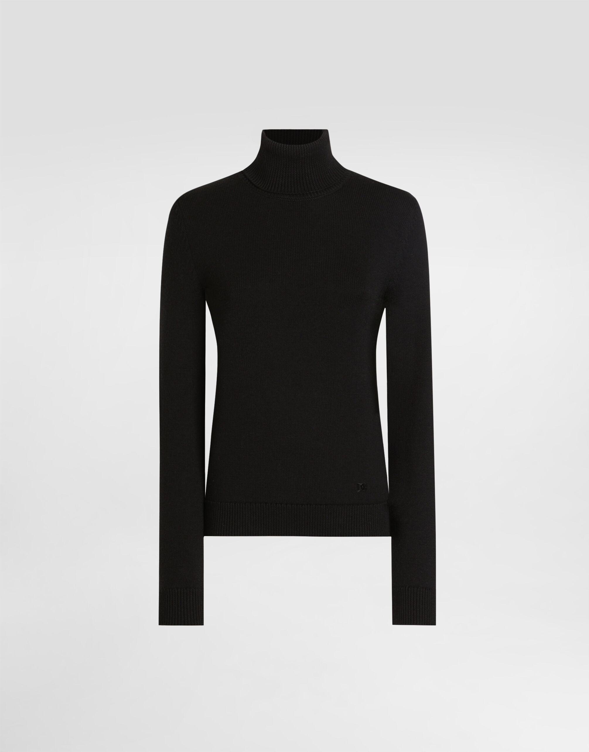 This virgin wool turtleneck is the epitome of elegance and comfort, perfect for facing cooler days in style. Its stockinette stitch and high collar design make it an essential item in any woman's wardrobe. Wool turtleneck pullovers: • Black • Short sleeves • Bottom width 60 cm on size 40 IT • The model is 175 cm tall and wears size 40 IT • Made in Italy External Composition: 100% Virgin Wool