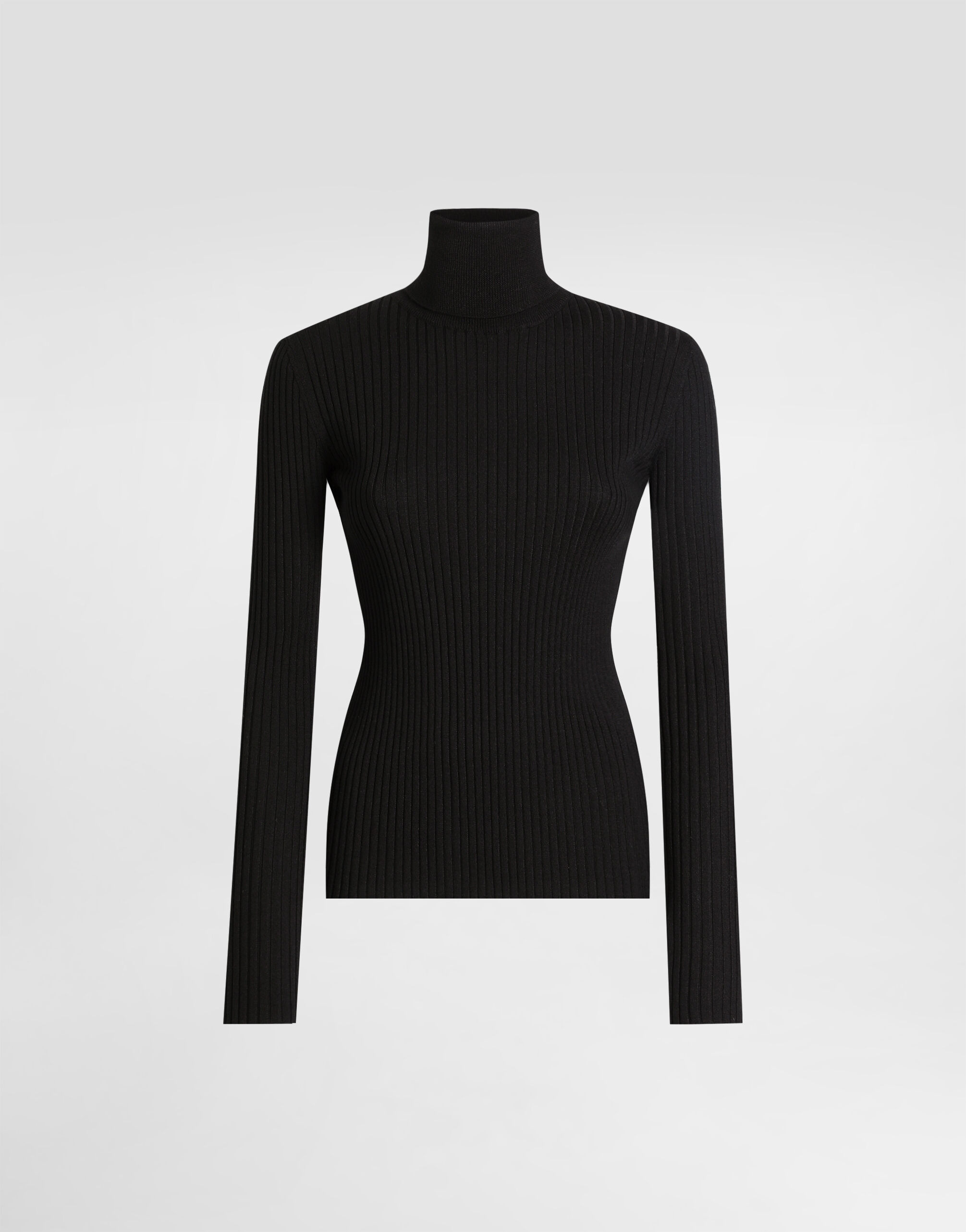 This virgin wool turtleneck is the essence of winter fashion, combining warmth and style in a women's wardrobe essential. Perfect for facing the coldest days with elegance. Wool turtleneck pullover: • Black • Long sleeves • Bottom width 60 cm on size 40 IT • The model is 175 cm tall and wears size 40 IT • Made in Italy External Composition: 50% Virgin Wool, 40% Polyamide, 10% Elastane