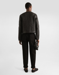 Italy and its beauty are reflected in the Men’s SS25 Collection. Woven raffia and leather give life to jackets, polo-shirts and sweaters to celebrating Italian craftsmanship. The color palette ranges from Nero Sicilia black to burgundy, contributing to conveying a sense of eternal elegance. Refined accessories complement the look: belts and loafers with hand-finished details and oversize bags, such as the Sicily, the Marlene with crocodile-effect print and the versatile Adamo tote. Woven nappa leather jacket: • Black • Regular fit • Long sleeves • Zipper fastening • Zipped front pockets • Unlined • The piece measures 61 cm from the rear collar seam on a size IT 48 • Made in Italy External composition: 100% Sheepskin Internal composition: 100% Silk