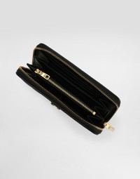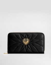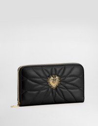 Zip-around Devotion wallet in soft quilted nappa leather. Practical and spacious, it features exclusive finishes with the iconic bejeweled branded heart hand-tooled from a metal alloy with pearl inlay: • Zipper fastening with branded slider • Twelve card slots • One bill compartment • One zipped coin pocket in the center • Two bellow document holders • Flat side pockets • Measurements: 19.5 x 11 x 3 cm - 7.7 x 4.3 x 1.2 inches • Made in Italy Care And Details External composition: 100% Lambskin Internal composition: 90% Calfskin 10% Rayon