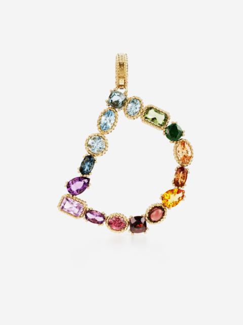 Rainbow alphabet D 18 kt yellow gold charm with multicolor fine gems
