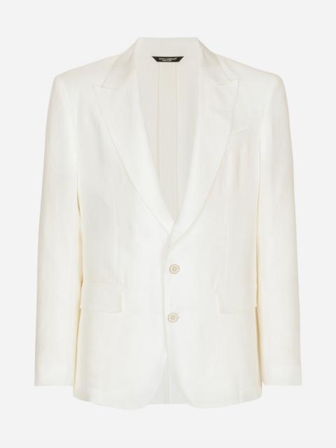 Long silk chiffon dress with polka-dot print, a pussy-bow detail and flower on neck
