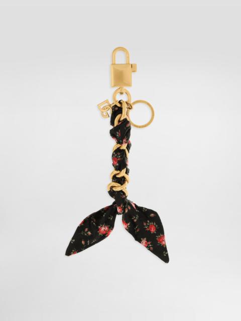 90x90 small flower bouquet-print silk twill scarf with lace insert