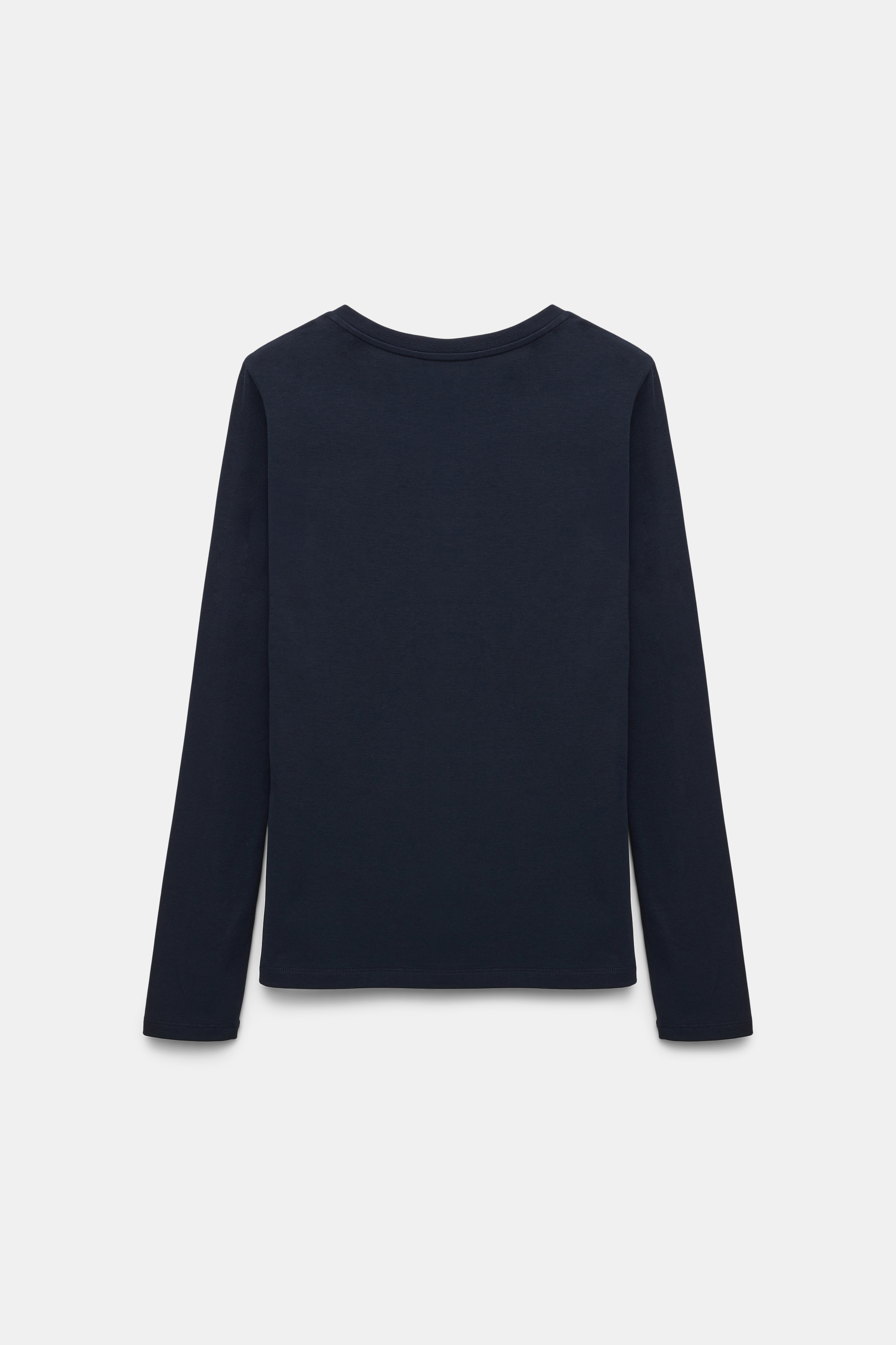 Simply perfect = this basic style. The stretch cotton long sleeve top has a round neckline and is loosely fitted. Material & Care - 96 % Cotton, 4 % Elastane - Round neck long sleeve top - Fine rib trim around the neckline - Double-needle stitched hem - Double-needle stitched cuffs - WE CARE - This item is finished according to STANDARD 100 by OEKO-TEX, 22.0.98928 Hohenstein HTTI - Mild wash / Delicates - Wash with similar colors Size & Fit - Our model is 180 cm tall and wears a size S - Fitted shoulders - Relaxed, loosely fitted