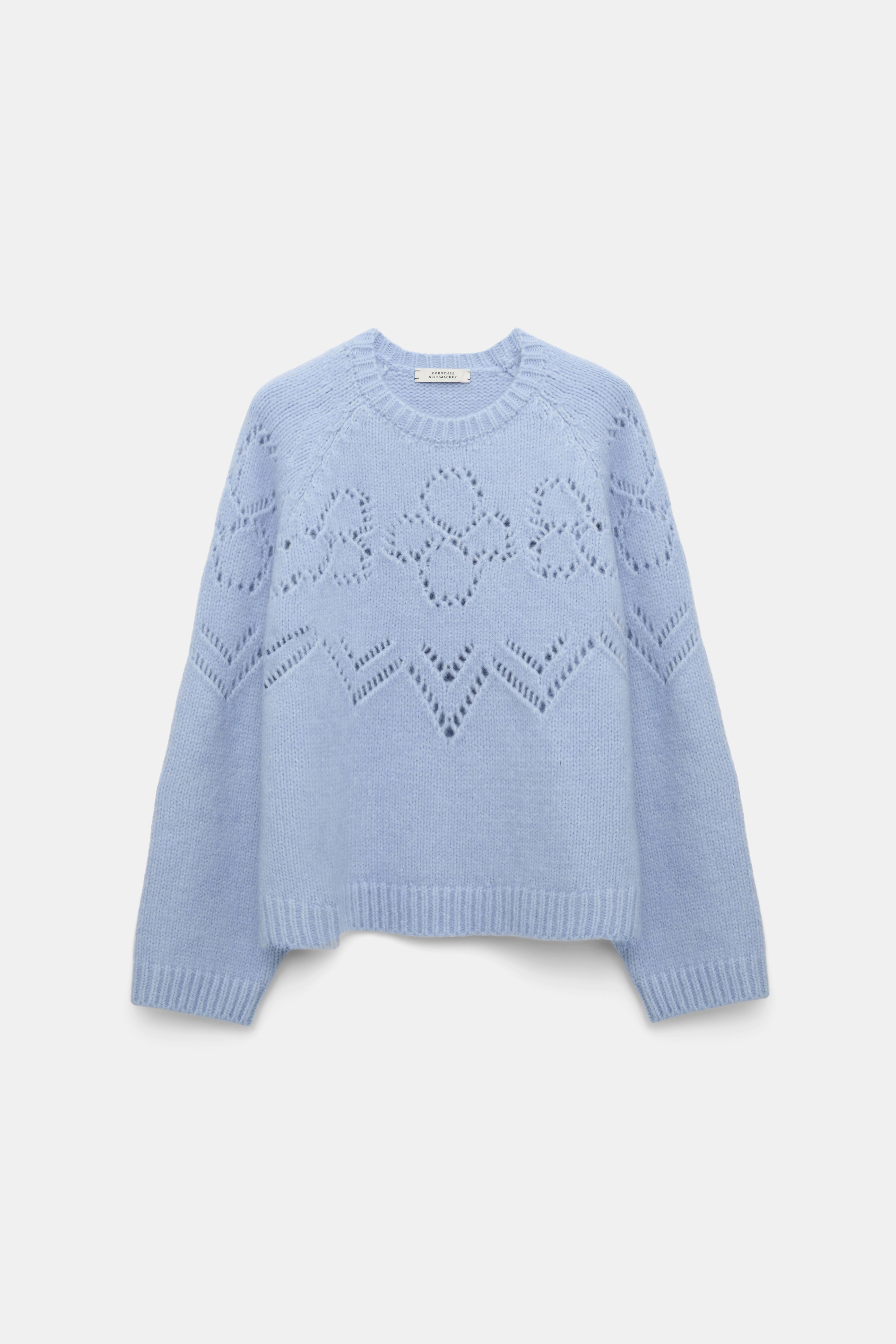D-roses for days...The cropped pullover is knit in a soft cashmere-silk blend and features D-rose and zigzag pointelle patterning. The pullover has a cozy, generous fit. Material & Care - 70 % Cashmere, 19 % Silk, 10 % Polyester, 1 % Elastane - Cashmere-silk blend round neck pullover - D-rose and zigzag pointelle patterning - Ribbed trim Size & Fit - Our model is 178 cm tall and wears a size S - Cropped, generous fit - Straight, wide raglan sleeves