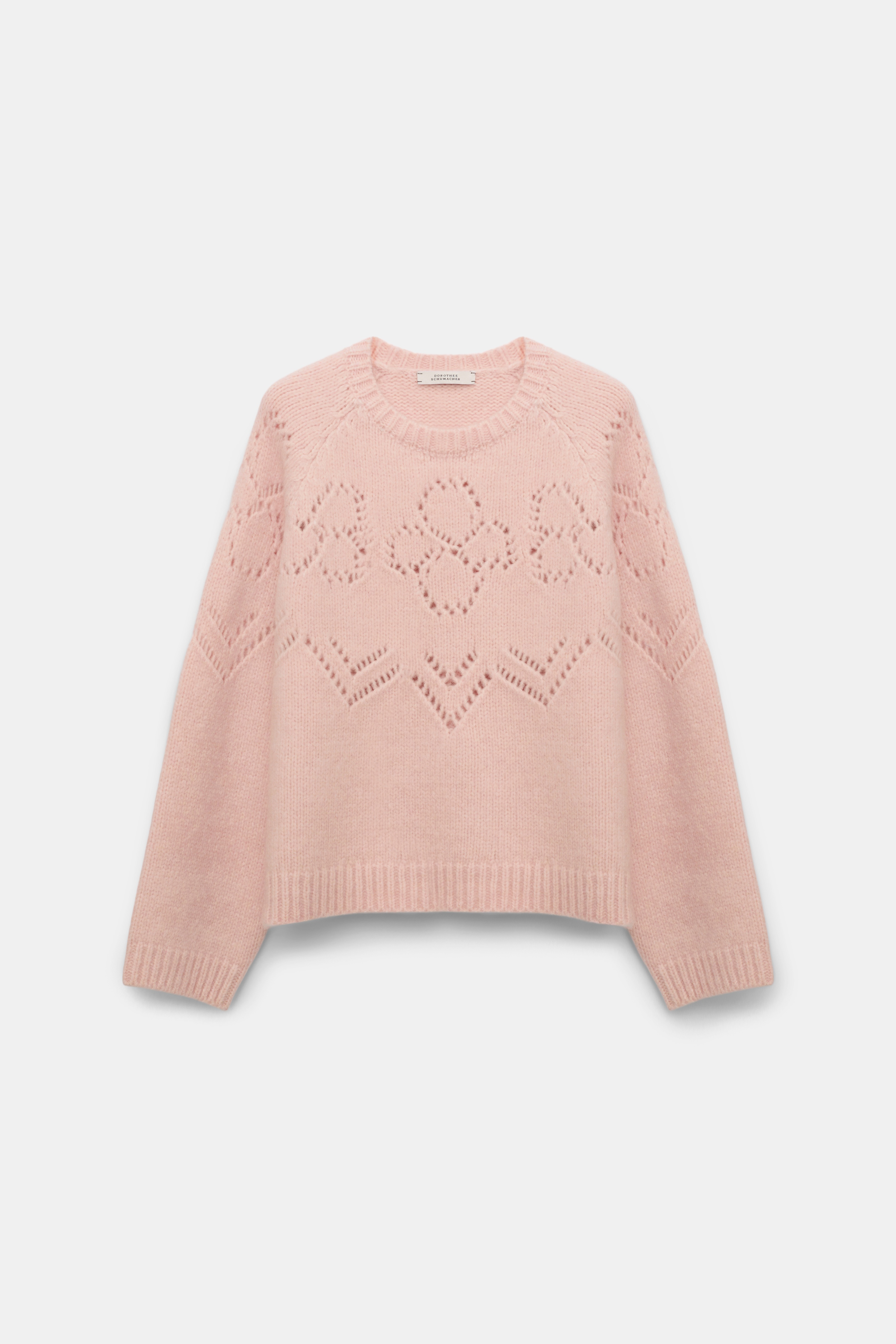 D-roses for days...The cropped pullover is knit in a soft cashmere-silk blend and features D-rose and zigzag pointelle patterning. The pullover has a cozy, generous fit. Material & Care - 70 % Cashmere, 19 % Silk, 10 % Polyester, 1 % Elastane - Cashmere-silk blend round neck pullover - D-rose and zigzag pointelle patterning - Ribbed trim Size & Fit - Our model is 180 cm tall and wears a size S - Cropped, generous fit - Straight, wide raglan sleeves