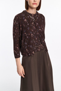 The cropped cardigan is knit in a soft wool-cashmere blend and has delicate floral patterning. The loosely fitted style has a round neckline and ribbed trim. The cardigan can be worn as a twinset with the matching short sleeve knit top. Material & Care - 70 % Virgin wool (Merino), 30 % Cashmere - Virgin Merino-cashmere floral knit cardigan - Round neckline - Distinct ribbed cuffs - Button placket with grosgrain ribbon - WE CARE - The wool content is mulesing-free - Hand wash cold / Machine wash old - Wash with similar colors Size & Fit - Our model is 179cm tall and wears a size 2 - Cropped, loosely fitted - Slight dropped shoulders