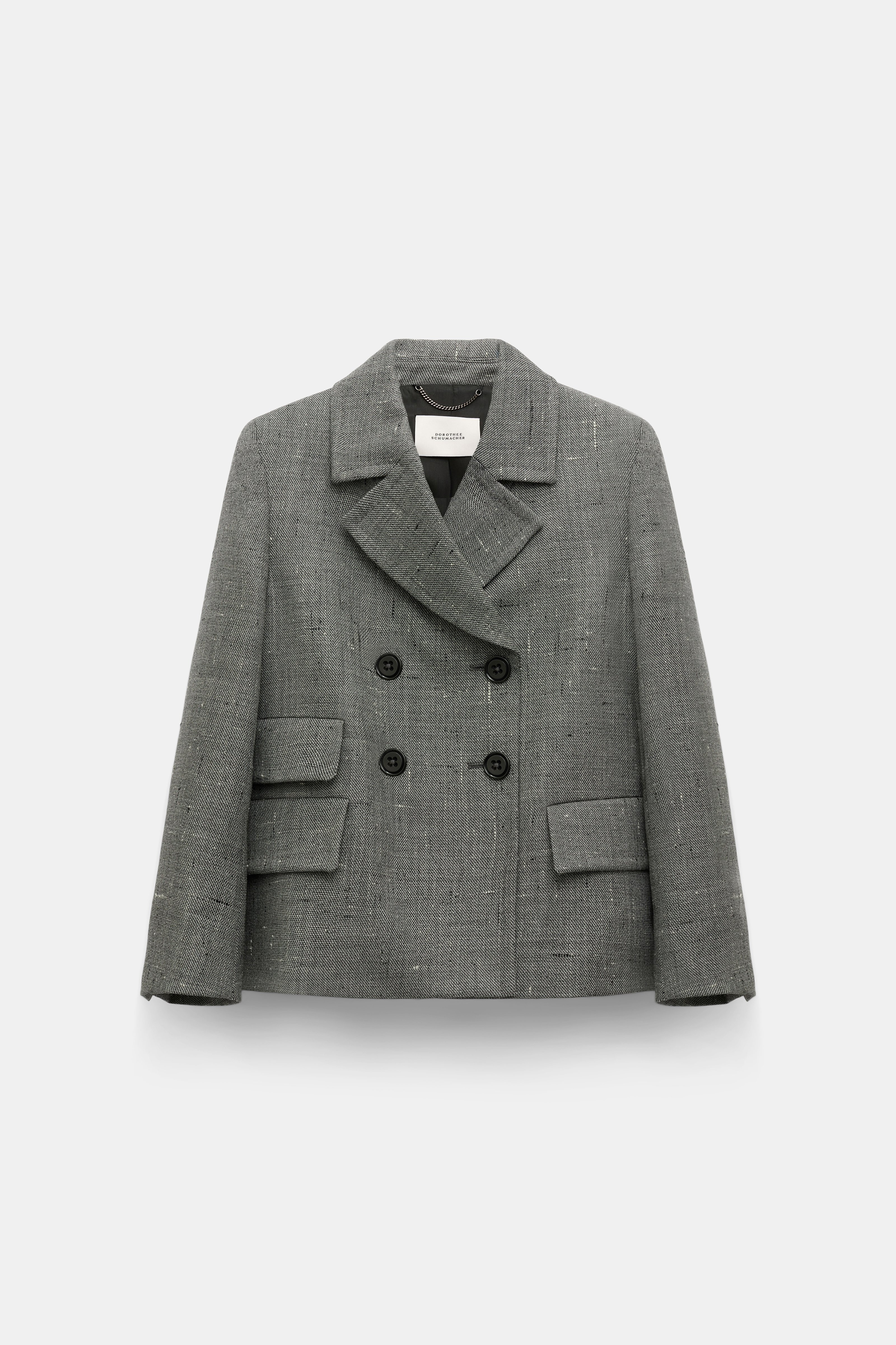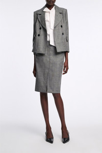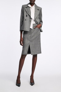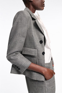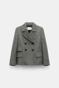 Detailed in salt & pepper virgin wool tweed, the blazer has a boxy cut and defines our business look this season. The matching pants complete the suit. Material & Care - 100 % Virgin Wool - Boxy blazer in virgin wool - Notched lapel - Double-breasted front - Flap pockets - Slit cuffs - Lined - Hand wash cold / Machine wash old - Wash with similar colors Size & Fit - Our model is 180cm tall and wears a size 2 - Boxy shape