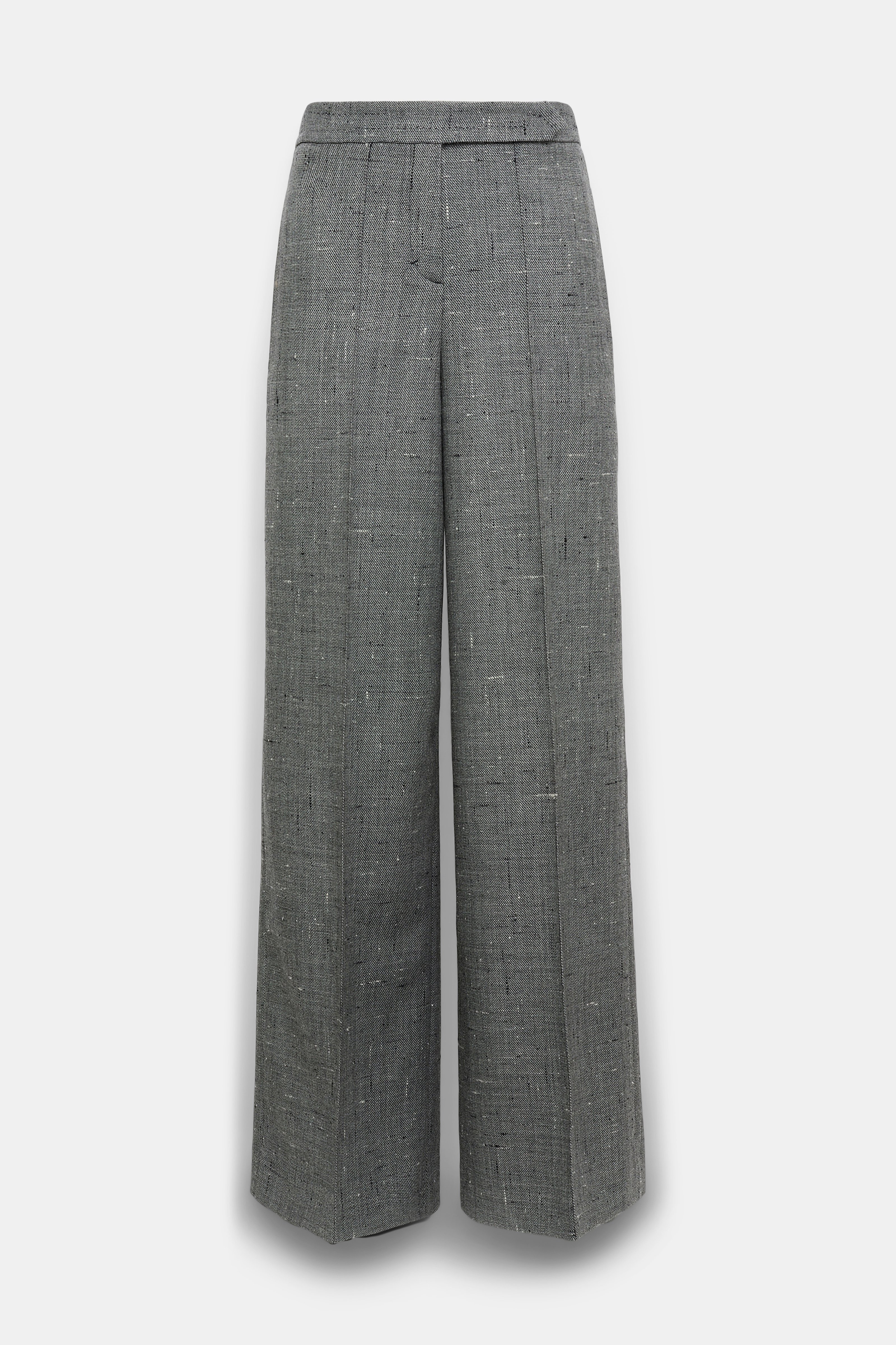 Detailed in salt & pepper virgin wool tweed, the pants have a wide leg and define our business look this season. The matching jacket completes the suit. Material & Care - 100 % Virgin Wool - Wide leg pants in virgin wool - Wide waistband with extended tab closure - Diagonal side pockets - Piped trim - Back welt pockets - Hand wash cold / Machine wash old - Wash with similar colors Size & Fit - Our model is 180cm tall and wears a size 2 - Wide leg