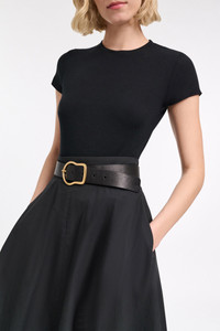 The short sleeve T-shirt is crafted in extra soft fine jersey infused with cashmere. The fitted, stretchy style has a round neckline. Material & Care - 86 % Modal, 10 % Cashmere, 4 % Elastane - Extra soft, round neck T-shirt - Two-way stretch, fine jersey with an extra soft feel - Fine ribbed trim around the neckline - Double-needle stitching at the cuffs and hem - WE CARE - This item is finished according to STANDARD 100 by OEKO-TEX, 22.0.98928 Hohenstein HTTI - Hand wash cold / Machine wash cold - Wash with similar colors Size & Fit - Our model is 180cm tall and wears a size 2 - Fitted