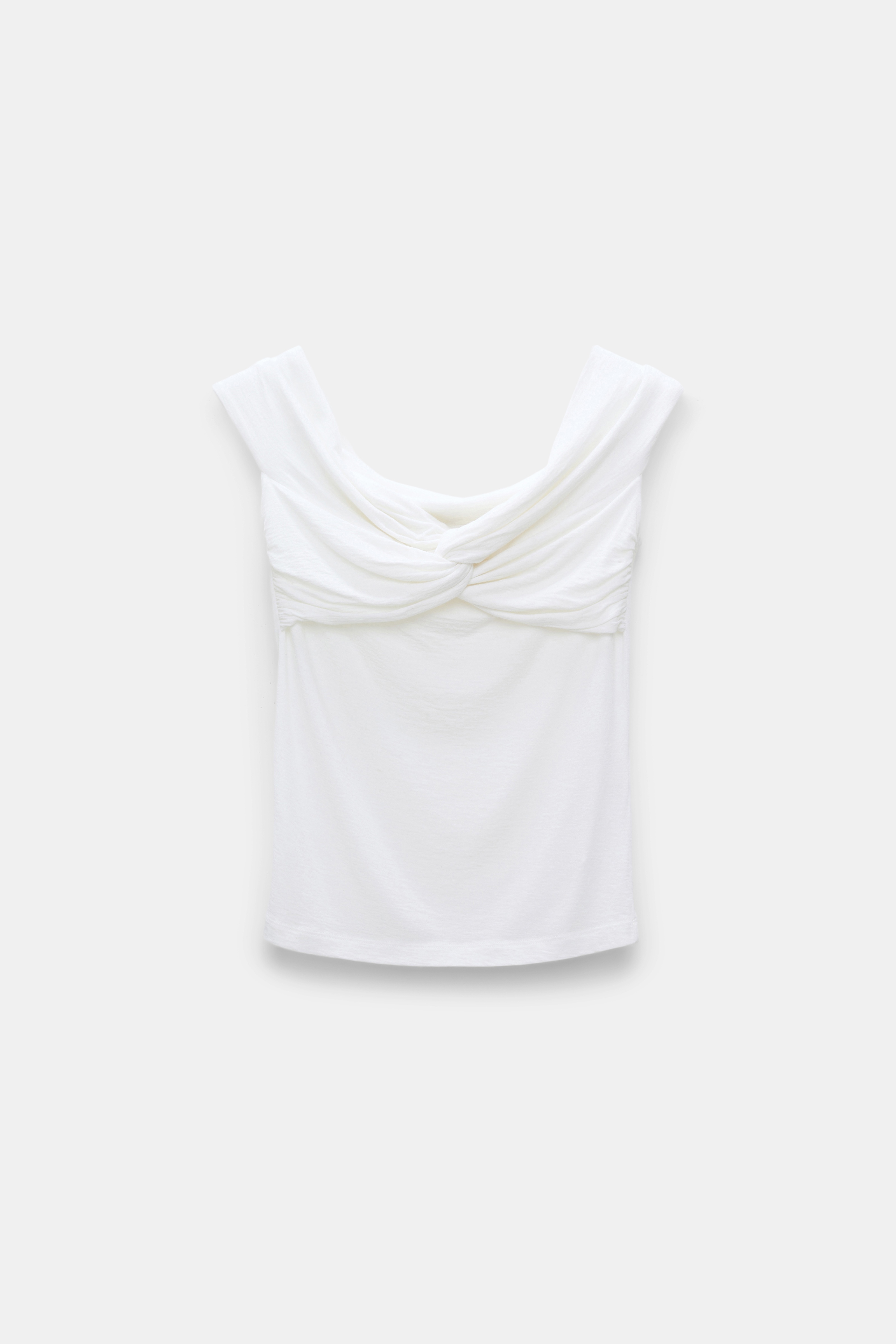 Crafted in extra soft fine jersey infused with cashmere, the stretchy top features a draped knot detail. The fitted style has a soft scoop V-neckline and overlapping effect. Material & Care - 86 % Modal, 10 % Cashmere, 4 % Elastane - Top with draped knot detail - Two-way stretch, fine jersey with an extra soft feel - Double layer top and sleeves - Double-needle stitching at the hem - WE CARE - This item is finished according to STANDARD 100 by OEKO-TEX, 22.0.98928 Hohenstein HTTI - Hand wash cold / Machine wash cold - Wash with similar colors Size & Fit - Our model is 180cm tall and wears a size 2 - Fitted