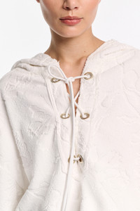 This is how we do beach: The cotton terry hoodie has a laced front and is covered with a floral jacquard print. The casual style is oversized and has soft fringing on the cuffs. Material & Care - 100 % Cotton - Cotton terry floral jacquard hoodie - Laced front with metal eyelets - Turn-up hood edge with double-needle stitching - Selvedge fringing on sleeves - Panel insert on the hem - Mild wash / Delicates - Wash with similar colors - Remove all detachable parts before cleaning Size & Fit - Our model is 178cm tall and wears a size S - Dropped shoulders - Oversized - Caftan-like long sleeves