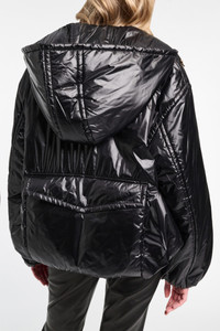 The anorak-style jacket is made of shiny nylon. The jacket has a partial front zip closure and XL patch flap pocket on the back. The jacket is slightly oversized and has a drawstring hood and hem. Material & Care - 100 % Polyamide - Hooded nylon anorak-style jacket - Partial front zip closure - Front pockets - Back flap patch pocket - Adjustable drawstring hem and hood - WE CARE - This item is finished according to STANDARD 100 by OEKO-TEX, 22.0.98928 Hohenstein HTTI Size & Fit - Our model is 179 cm tall and wears a size S - Slightly oversized