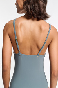 The V-neck swimsuit has adjustable straps and icy gold-tone stud detailing on the back. The swimsuit has removable padding. Material & Care - 75 % Polyamide, 25 % Elastane - V-neck swimsuit - Double layer body - Removable padding - Adjustable straps - Double-needle stitching on the leg opening - Icy gold-tone metal studs on the back - Mild wash / Delicates - Wash with similar colors Size & Fit - Our model is 178cm tall and wears a size S - Deep V-neckline - FITTED