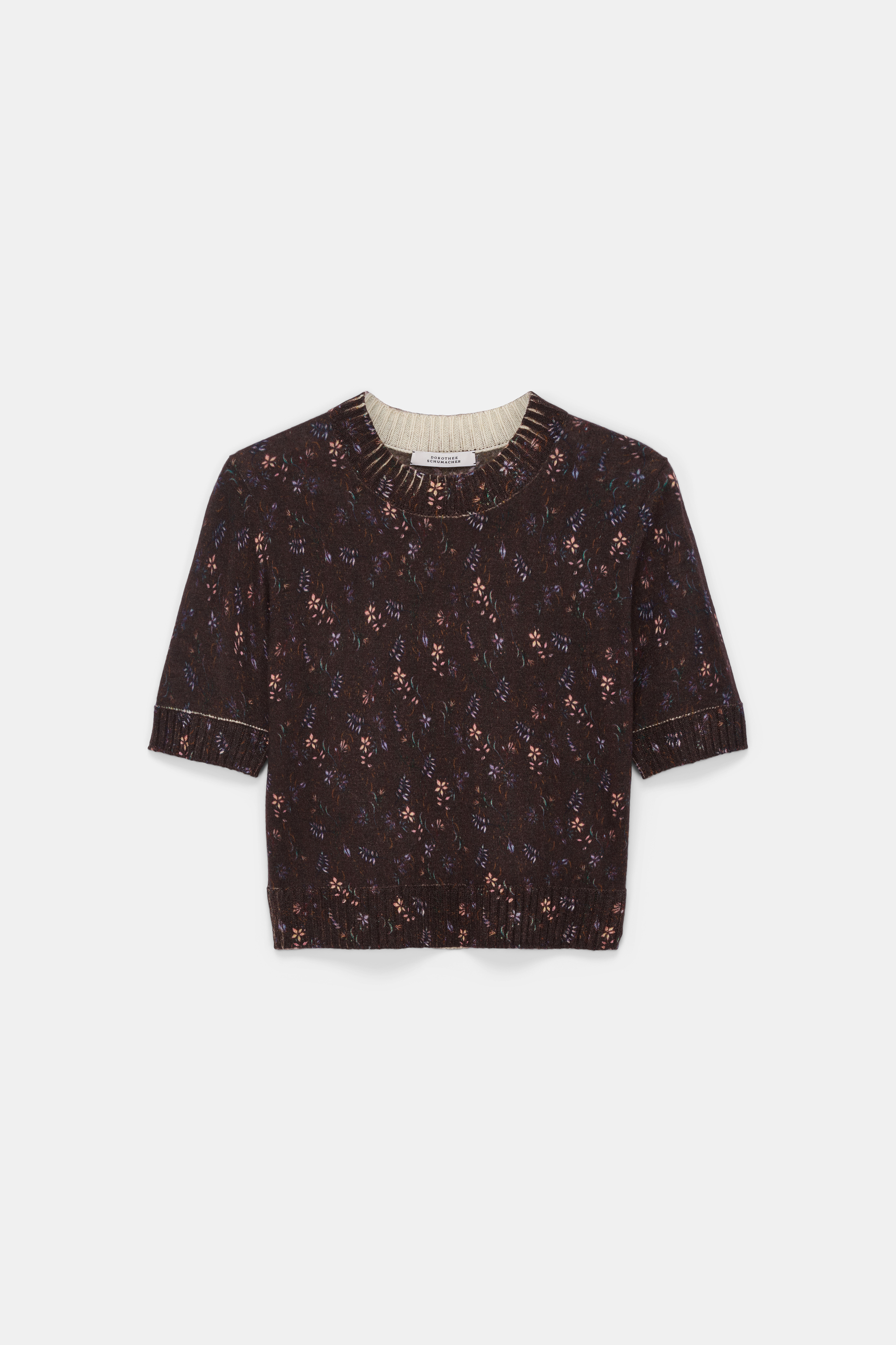 The short sleeve pullover is knit in a soft wool-cashmere blend and has delicate floral patterning. The loosely fitted style has a round neckline and ribbed trim. The knit top can be worn as a twinset with the matching cardigan. Material & Care - 70 % Virgin Wool, 30 % Cashmere - Wool-cashmere floral knit short sleeve pullover - Round neckline - Distinct ribbed cuffs - WE CARE - The wool content is mulesing-free - Hand wash cold / Machine wash old - Wash with similar colors Size & Fit - Our model is 179cm tall and wears a size 2 - Loosely fitted