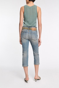 The 5-pocket jeans are fitted and have a narrow frayed waistband. The jeans have a cropped capri length and soft distressed finish. Material & Care - 98 % Cotton, 2 % Elastane - Capri-length jeans - Classic 5-pocket styling - Narrow frayed waistband - Long belt loops - Mild wash / Delicates - Wash with similar colors - Caution, may run - Contains non-textile parts of animal origin Size & Fit - Our model is 178 cm tall and wears a size S - Cropped leg - Fitted
