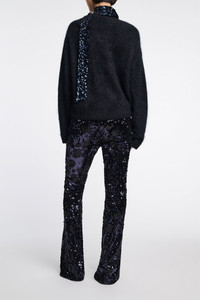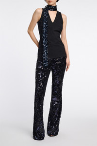 The shell is crafted in Punto Milano and has a V-neckline. The shell has a back zip closure with a high collar in the back and a matching sequin scarf. Material & Care - 67 % Viscose, 28 % Polyamide, 5 % Elastane - Punto Milano shell with sequin scarf - V-neckline - Hidden center back zip closure - WE CARE - This item is finished according to STANDARD 100 by OEKO-TEX, 22.0.98928 Hohenstein HTTI Size & Fit - Our model is 179 cm tall and wears a size S - Fitted