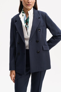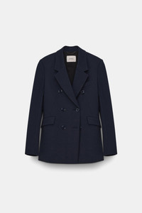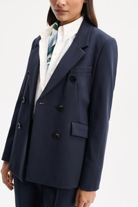 Perhaps the most comfortable blazer (ever), the double-breasted style is made from our favorite Punto Milano. Pair with matching pants for a suit that takes you anywhere! Material & Care - 67 % Viscose, 28 % Polyamide, 5 % Elastane - Double-breasted blazer in Punto Milano - Dropped lapel - Diagonal darts at the bust - Chest pocket - Button closures - Side flap pockets - Dry cleaning only - No optical brighteners Size & Fit - Our model is 181cm tall and wears a size S - Fitted - Falls to the hip