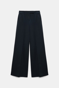 The pants are detailed in our forever favorite Punto Milano. The pants have a wide leg and unfinished hemline for a custom tailored finish. Pair with the matching blazer for a suit look.. Material & Care - 67 % Viscose, 28 % Polyamide, 5 % Elastane - Wide leg pants in Punto Milano - Diagonal slit pockets - Waistband with extended tab closure - Back welt pockets - Piped trim - Comes with an unfinished hemline so you can custom tailor to your desired length Size & Fit - Wide leg