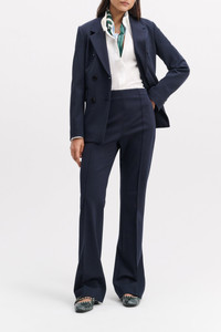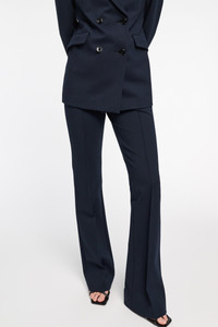 Fitted and flared in Punto Milano, these pants look as incredible as they feel on. Pair with the matching blazer for a suit that takes you anywhere! Material & Care - 67 % Viscose, 28 % Polyamide, 5 % Elastane - Flared pants in Punto Milano - Stitched piping - Hidden fly closure - High waist front - Piped waistband - On-seam side pockets - Back welt pockets - Hand wash programme / Machine wash - Wash with similar colours Size & Fit - Our model is 181 cm tall and wears a size S - High rise - Fitted leg - Flared ankle