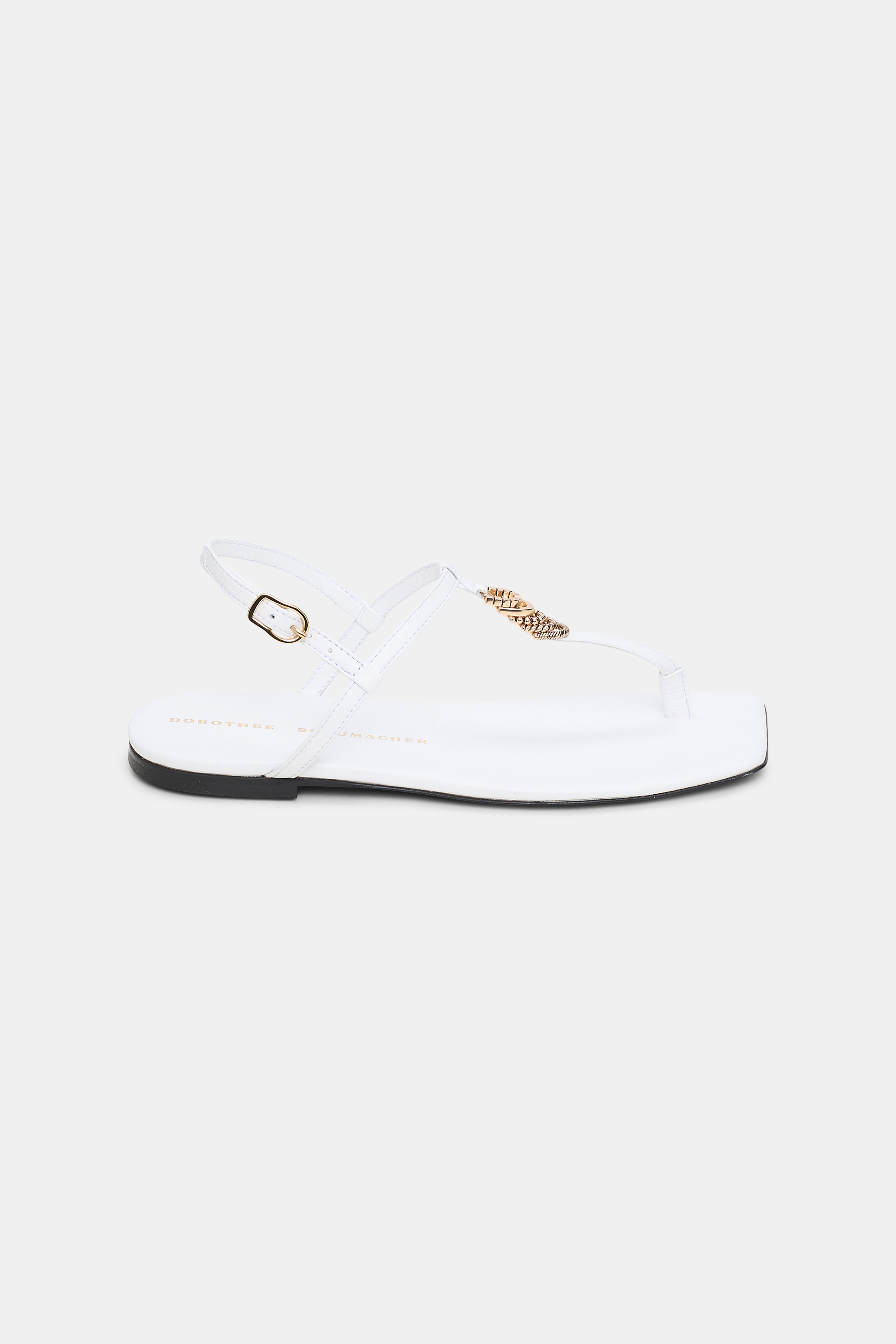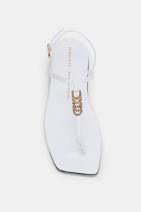 Embracing freedom and individuality. The flat sandals have a square toe and barely-there look. The T-strap is embellished with mixed texture D-rings. Material & Care - 100 % Leather (goat) - Flat T-strap sandals - Goat leather upper and lining - Square toe shape - Signature D-ring detail - Adjustable back strap with signature buckle - Slim insole is designed for a barely there look - Shiny tunit sole embossed with CATCH HER. IF YOU CAN. Size & Fit - Fits true to size - Adjustable back strap