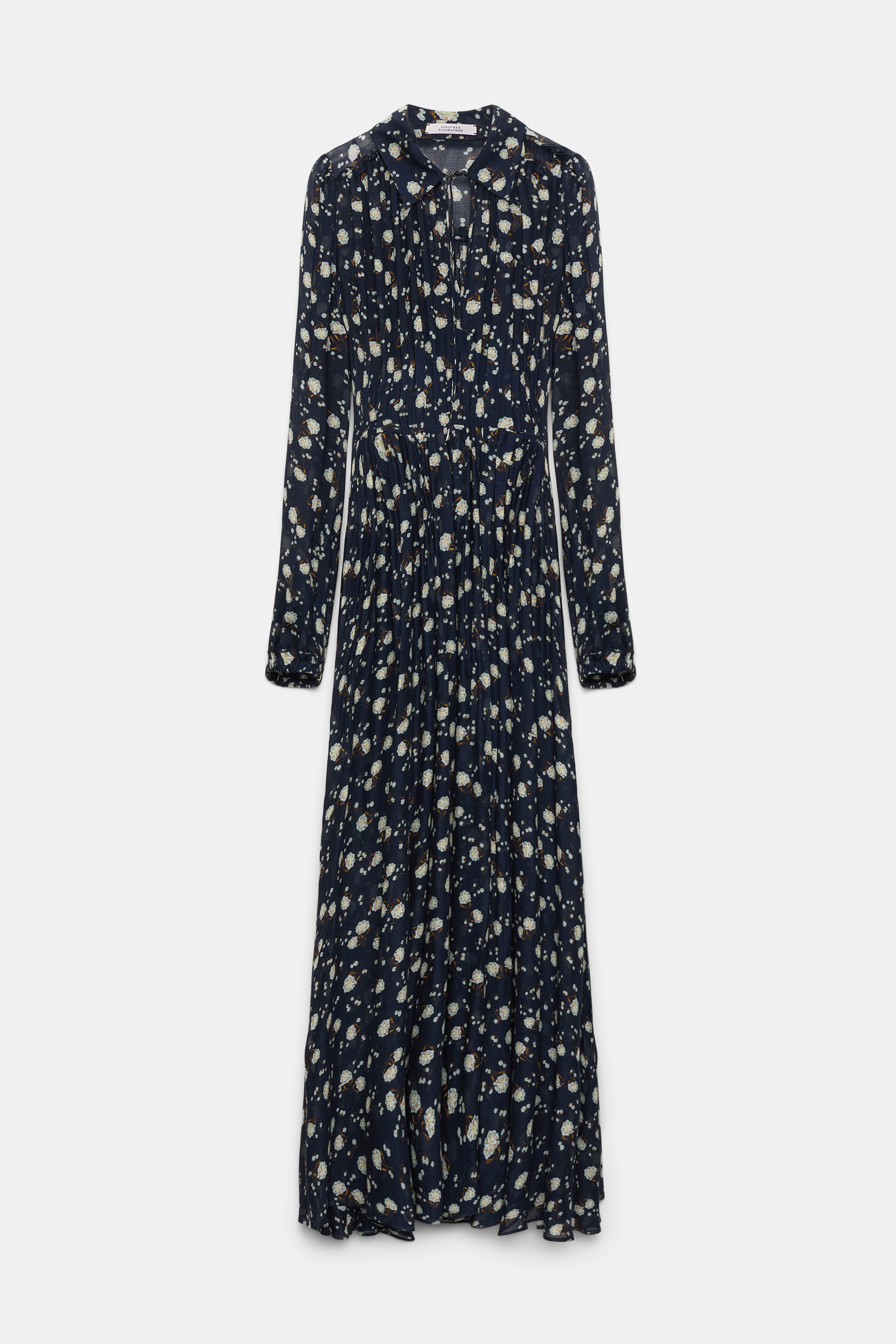 Fill your life with flowers: The printed gauze maxi dress is covered with a micro floral print and has a delicate tie collar. The floor-grazing style has swishy volume at the hem and fitted long sleeves. Material & Care - 92 % Viscose, 8 % Wool - Micro floral print viscose-wool gauze maxi dress - Shirt collar with ribbon tie - Side pockets - Separate underdress Size & Fit - Our model is 179 cm tall and wears a size S - Fitted shoulders - Generous volume at the hem