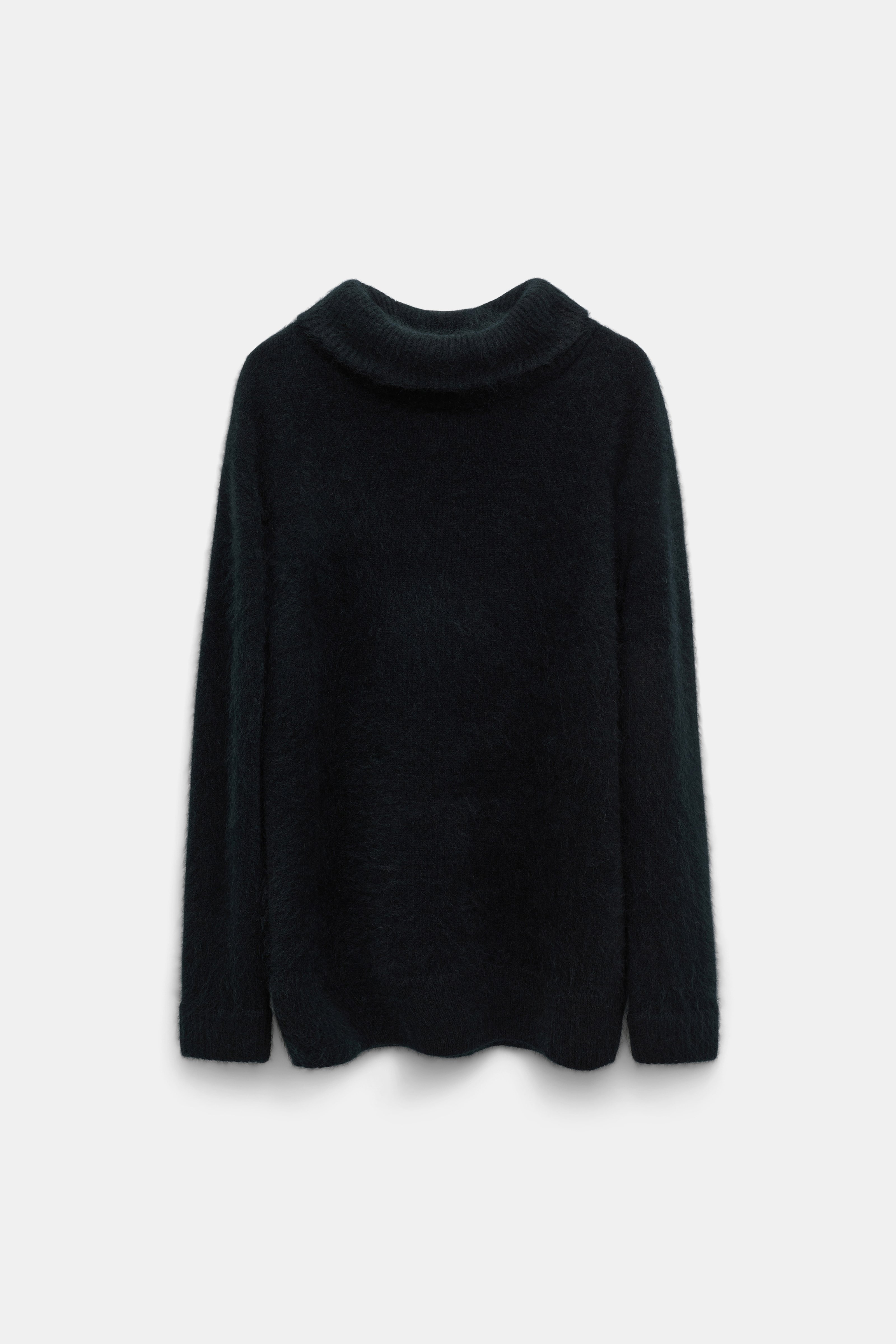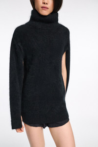 One soft sweater, two ways to style: The virgin Merino-cashmere turtleneck pullover has a fluffy knit wash for an extra soft finish and can also be worn as a vest. Material & Care - 66 % Virgin wool (Merino), 28 % Cashmere, 5 % Polyamide, 1 % Elastane - Virgin Merino-cashmere pullover with wide turtleneck - "Fluffy knit" wash is pleated with elastane - Slit long sleeves - Button-up sleeve slit - WE CARE - The wool content is mulesing-free - WE CARE - This item is finished according to OEKO-TEX® STANDARD 100, 22.0.98928 Hohenstein - Hand wash cold / Machine wash old - Wash with similar colors Size & Fit - Our model is 180cm tall and wears a size 2 - Loosely fitted at the top, fitted at the hips
