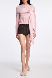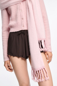 The softest scarf we could make: The virgin Merino-cashmere scarf has a fluffy wash finish and twisted fringe. Material & Care - 70 % Virgin wool (Merino), 30 % Cashmere - Virgin Merino-cashmere scarf - Fluffy knit wash - Twisted fringe - WE CARE - The wool content is mulesing-free - WE CARE - This item is finished according to OEKO-TEX® STANDARD 100, 22.0.98928 Hohenstein Size & Fit - Narrow width