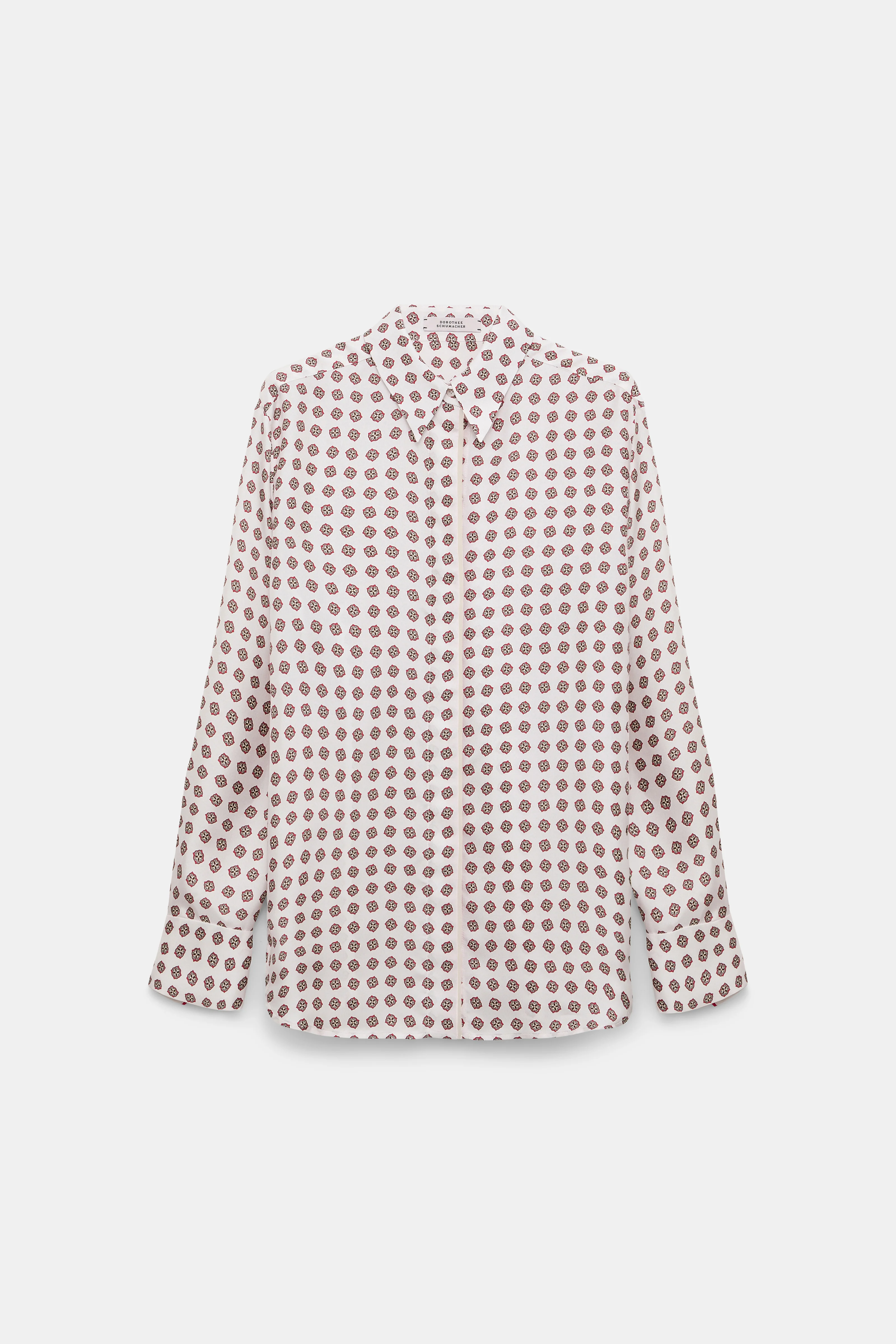 Signature print, signature style: The shirt has a relaxed fit and features our signature tie print. The shirt is made from silk twill and has a concealed button placket. Material & Care - 100 % Silk - Printed silk twill shirt - Signature tie print - Classic shirt collar - Hidden button placket - Hand wash program / Machine wash - Wash with similar colors Size & Fit - Our Model is 178cm tall and wears a size 2. - Slight dropped shoulders - Relaxed fit