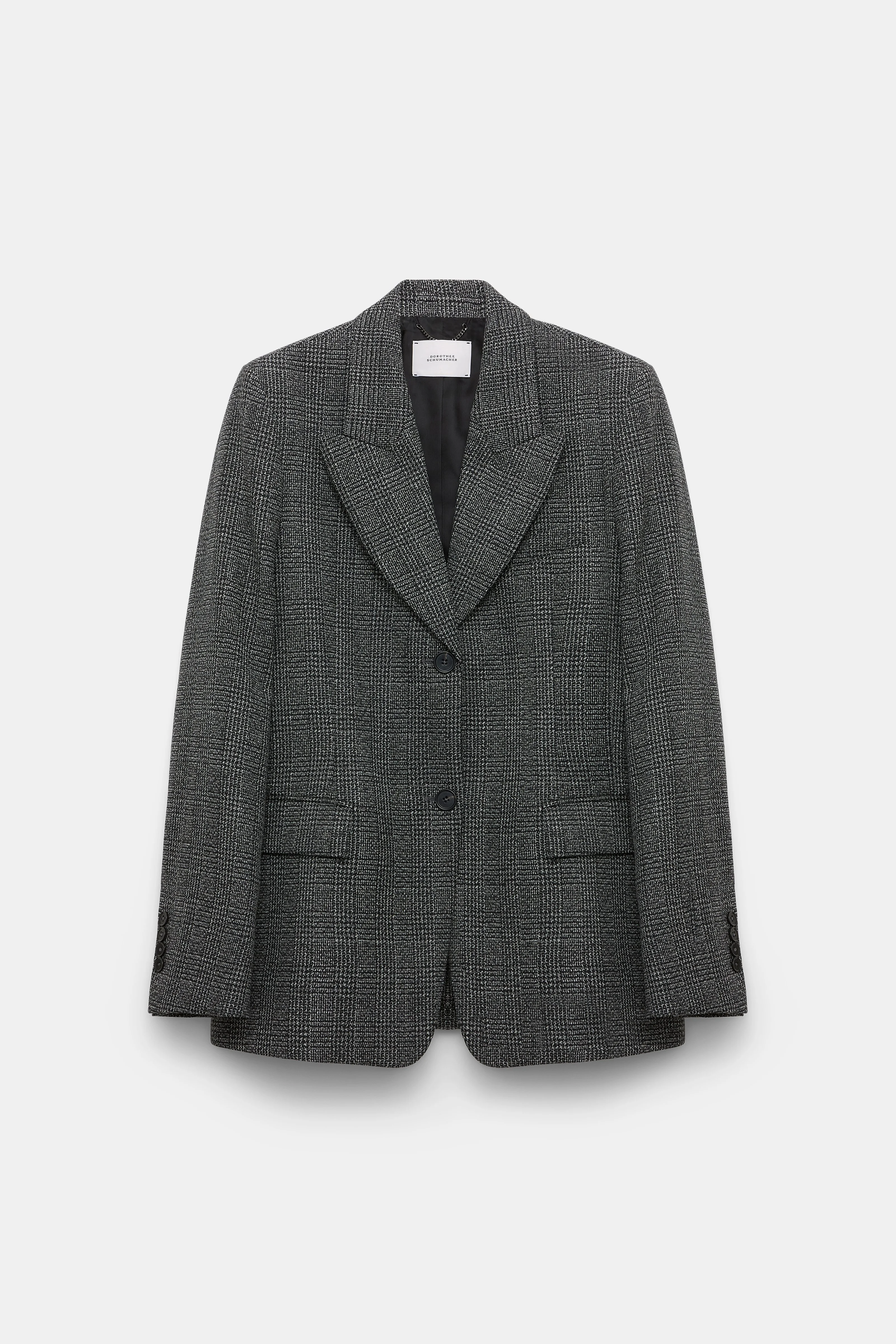 The glen plaid blazer is made from pure virgin wool and has a slim tailored fit. The blazer has a peaked lapel and can be worn as a suit with the matching pants. Material & Care - 100 % Virgin Wool - Glen plaid blazer - Peaked lapel - Chest pocket - Flap pockets - Slit cuffs - Lined - Dry clean only - No optical brighteners - Do not expose to extreme light - Shield from sharp items Size & Fit - Our Model is 179cm tall and wears a size 2. - Slim tailored fit