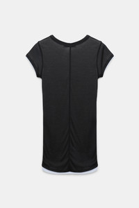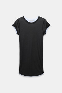 Love these layers: The double layer T-shirt is made from fine jersey and has coverlock seams. The round neck style is fitted and has a white under layer. Material & Care - 70 % Lyocell, 30 % Cotton - Double layer fine single jersey T-shirt - Round neckline - Coverlock shoulder-, side- and center back seams - Double-needle stitching - Fine rib trim on the hem - WE CARE - This item is finished according to STANDARD 100 by OEKO-TEX, 22.0.98928 Hohenstein HTTI - Hand wash program / Machine wash - Wash with similar colors Size & Fit - Fitted shoulders - Fitted
