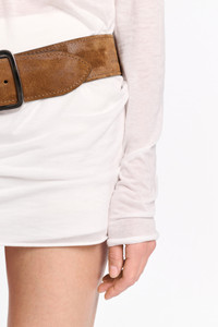 The double layer fine jersey T-shirt has a round neckline and extra long sleeves. The comfortable style has a back seam with a soft gathered drape. Material & Care - 70 % Lyocell, 30 % Cotton - Double layer fine single jersey long sleeve T-shirt - Round neckline with fine rib trim - Coverlock seams - Center back seam with soft gathered drape - Raw edges - WE CARE - This item is finished according to STANDARD 100 by OEKO-TEX, 22.0.98928 Hohenstein HTTI - Hand wash program / Machine wash - Wash with similar colors Size & Fit - Our model is 178cm tall and wears a size S - Casual, fitted shoulders - Loosely fitted - Extra long sleeves