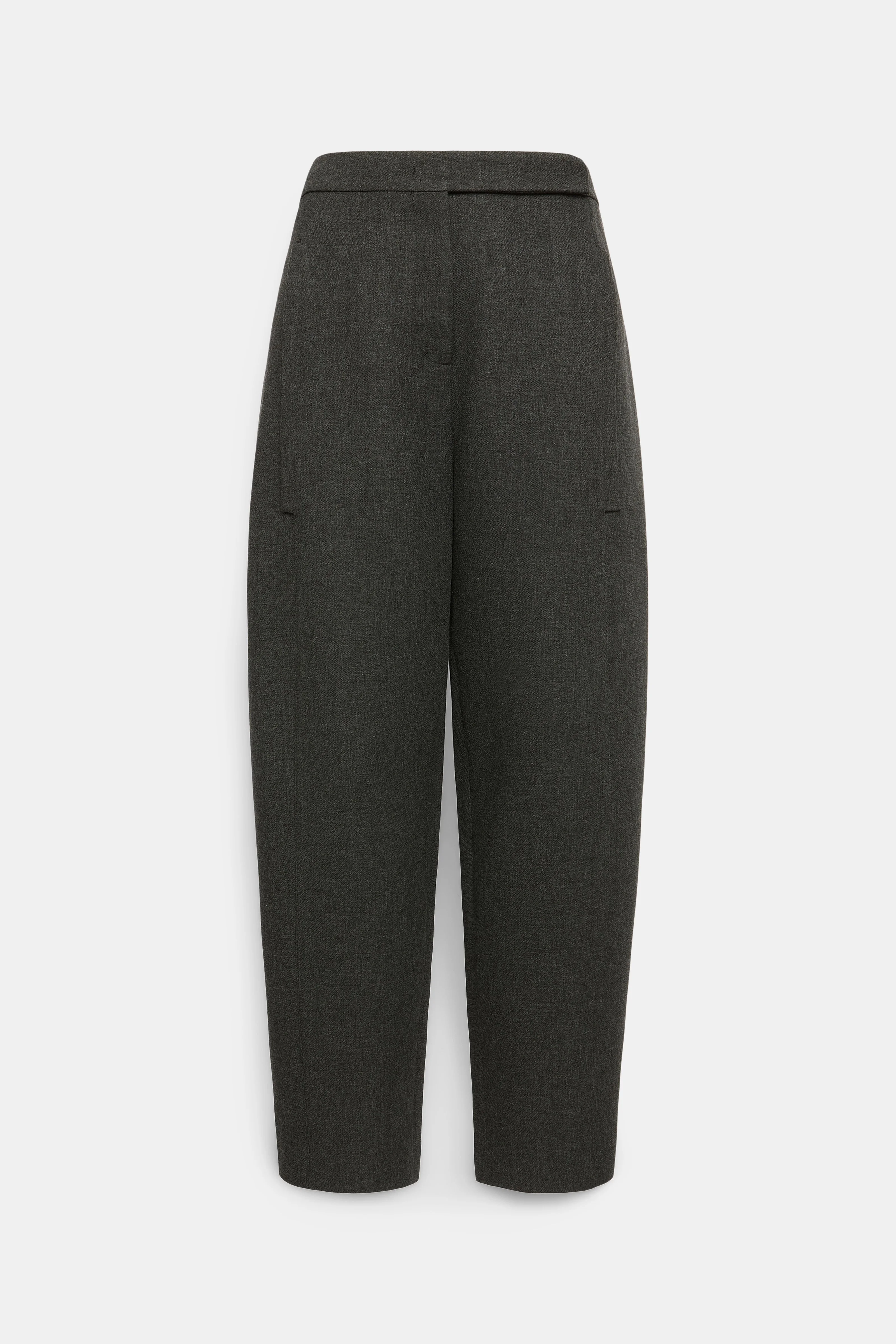 The pants are made from triple layer fabric and have welted pockets. The peg top style can be worn as a suit with the matching blouson jacket. Material & Care - 62 % Viscose, 20 % Polyacrylic, 10 % Polyester, 8 % Wool - Pants in triple-layer fabric - Long welt pockets on the front - Waistband with extended tab closure - Back welt pockets - Vertical panel seaming - Partially lined - Dry clean only - No optical brighteners - Do not expose to extreme light - Shield from sharp items Size & Fit - Slight peg-top shape - Slight cropped length - Relaxed inseam