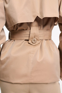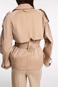 One iconic style, two ways to wear it: The trench coat has a slightly oversized silhouette and features an adjustable length with snap closures at the hemline. The outerwear classic features trench coat details and a belted sash. Material & Care - 100 % Cotton - Double-breasted trench coat - Snap closures at the hem for an adjustable length - Notched collar - Patch pockets - Buttoned tab cuffs - Storm flap - Epaulettes - Belted sash with covered buckle - Hand wash program / Machine wash - Wash with similar colors Size & Fit - Our model is 178cm tall and wears a size 2 - Slightly oversized