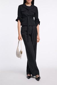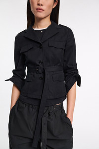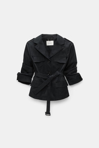 The trench coat-blazer hybrid has bracelet-length sleeves and a slim tailored fit. The jacket features classic trench coat details and a belted sash. Material & Care - 100 % Cotton - Trench coat-blazer hybrid - Notched collar - Patch pockets - Buttoned cuffs - Back yoke - Epaulettes - Belted sash with covered buckle - Hand wash program / Machine wash - Wash with similar colors Size & Fit - Our model is 180cm tall and wears a size 2 - Form-fitting - Cropped sleeves