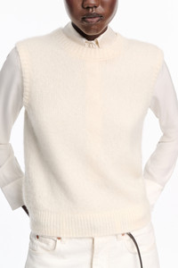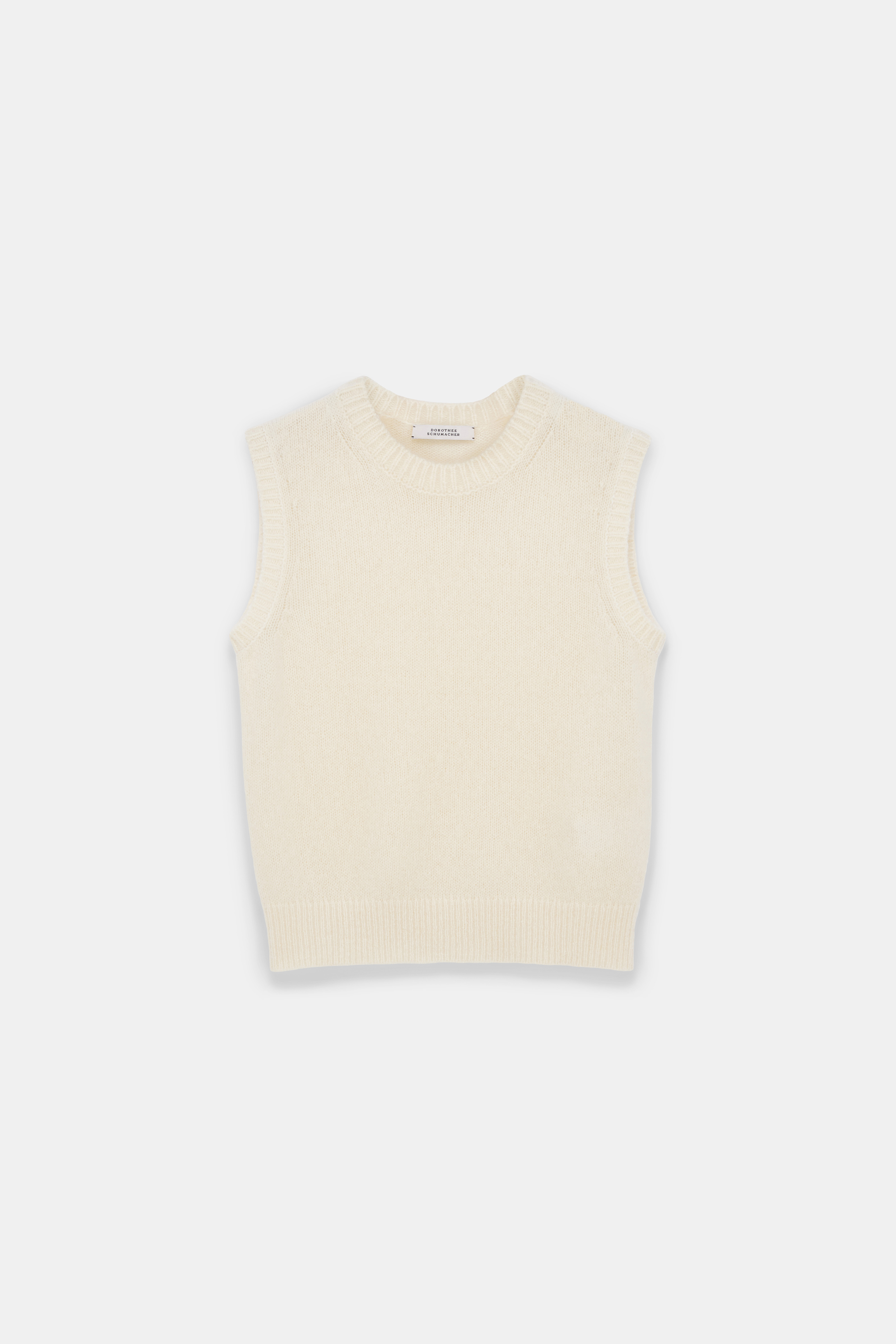Knit from luxuriously soft new cashmere, the round neck shell is cropped and loosely fitted. The shell can be worn as a twinset with the matching cardigan. Material & Care - 100 % Cashmere - New cashmere knit shell - Round neckline - WE CARE - This item is finished according to OEKO-TEX® STANDARD 100, 22.0.98928 Hohenstein - Hand wash cold / Machine wash old - Wash with similar colors Size & Fit - Our model is 179cm tall and wears a size 2 - Cropped, loosely fitted - Fitted shoulders