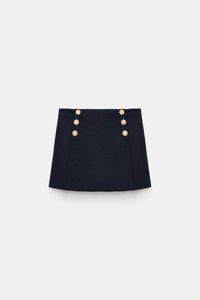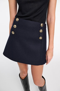 The bonded wool flannel mini skirt has a decorative front panel with gold-tone buttons. The thigh-grazing style has an in-seam side zip closure. Material & Care - 48 % Wool, 32 % Polyester, 20 % Polyamide - Bonded wool flannel mini skirt - Gold-tone buttons - In-seam side zip closure Size & Fit - Our model is 179 cm tall and wears a size S - Slight A-line