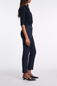 The new suiting is (pin)striped: Crafted in a linen blend, the pinstripe pants feature a slim leg and cropped length. The pants can be worn as part of a suit with the matching shell and blazer. Material & Care - 52 % Linen, 45 % Viscose, 2 % Elastane, 1 % Polyester - Slim cropped pinstripe pants - Waistband with extended tab closure - Diagonal side pockets - Back welt pockets - Comes with an unfinished hemline so you can custom tailor to your desired length - Dry clean only - No optical brighteners - Do not expose to extreme light - Shield from sharp items Size & Fit - Our model is 178cm tall and wears a size 2 - Cropped leg