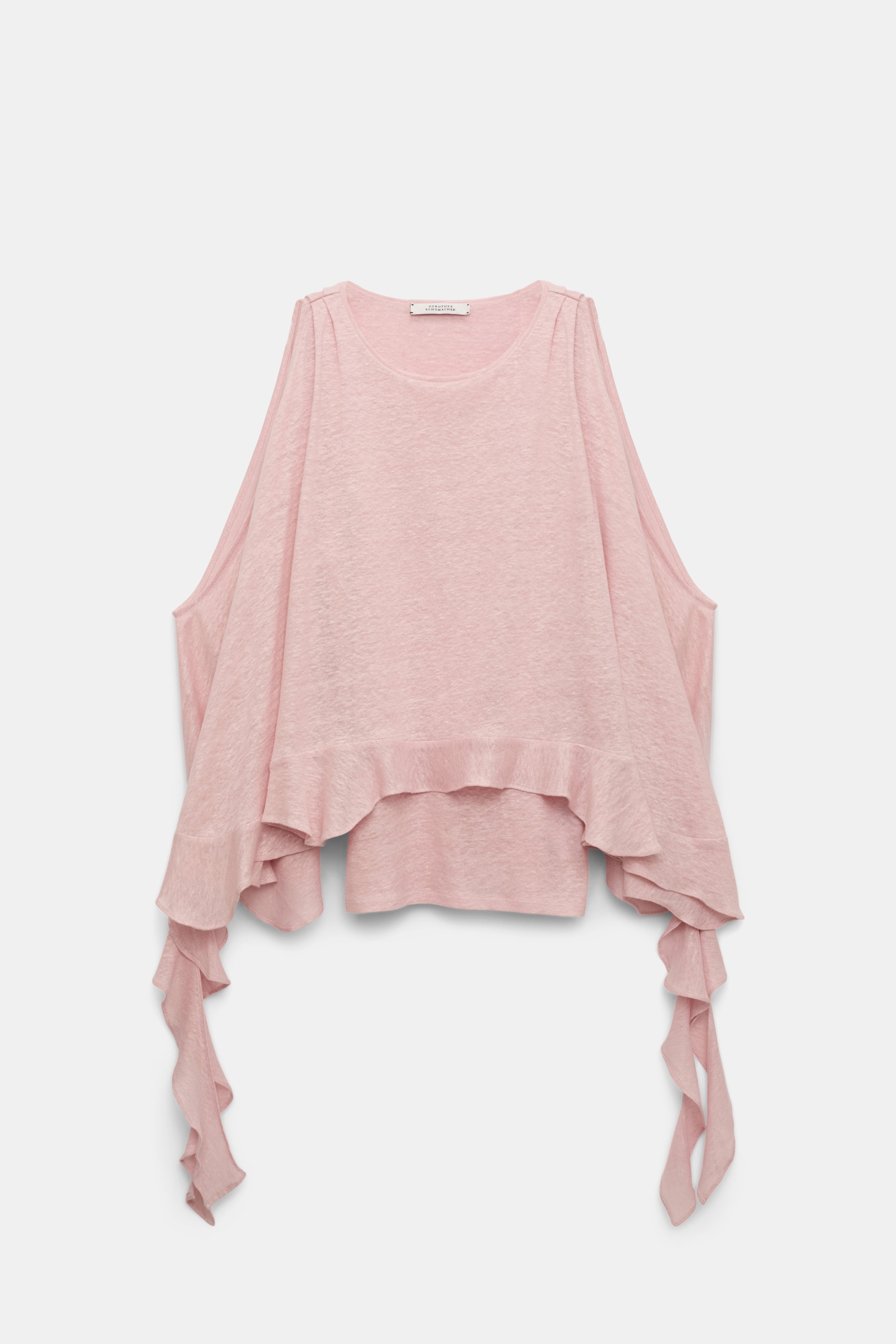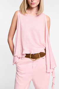 Easy breezy in hemp: The round neck hemp tank top has long draped ruffles on the sides and a flared A-line drape. Material & Care - 100 % Hemp - Hemp tank top with ruffles - Fine pleating on the shoulder seams - Ruffle draping on the hem, loosely draped side seams - Double layer front and back - WE CARE - This item is finished according to STANDARD 100 by OEKO-TEX, 22.0.98928 Hohenstein HTTI Size & Fit - Our model is 179 cm tall and wears a size S - Narrow shoulders - Flared silhouette