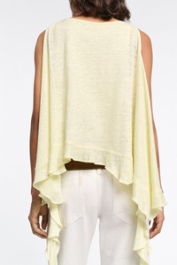 Easy breezy in hemp: The round neck hemp tank top has long draped ruffles on the sides and a flared A-line drape. Material & Care - 100 % Hemp - Hemp tank top with ruffles - Fine pleating on the shoulder seams - Ruffle draping on the hem, loosely draped side seams - Double layer front and back - WE CARE - This item is finished according to STANDARD 100 by OEKO-TEX, 22.0.98928 Hohenstein HTTI Size & Fit - Our model is 178 cm tall and wears a size S - Narrow shoulders - Flared silhouette