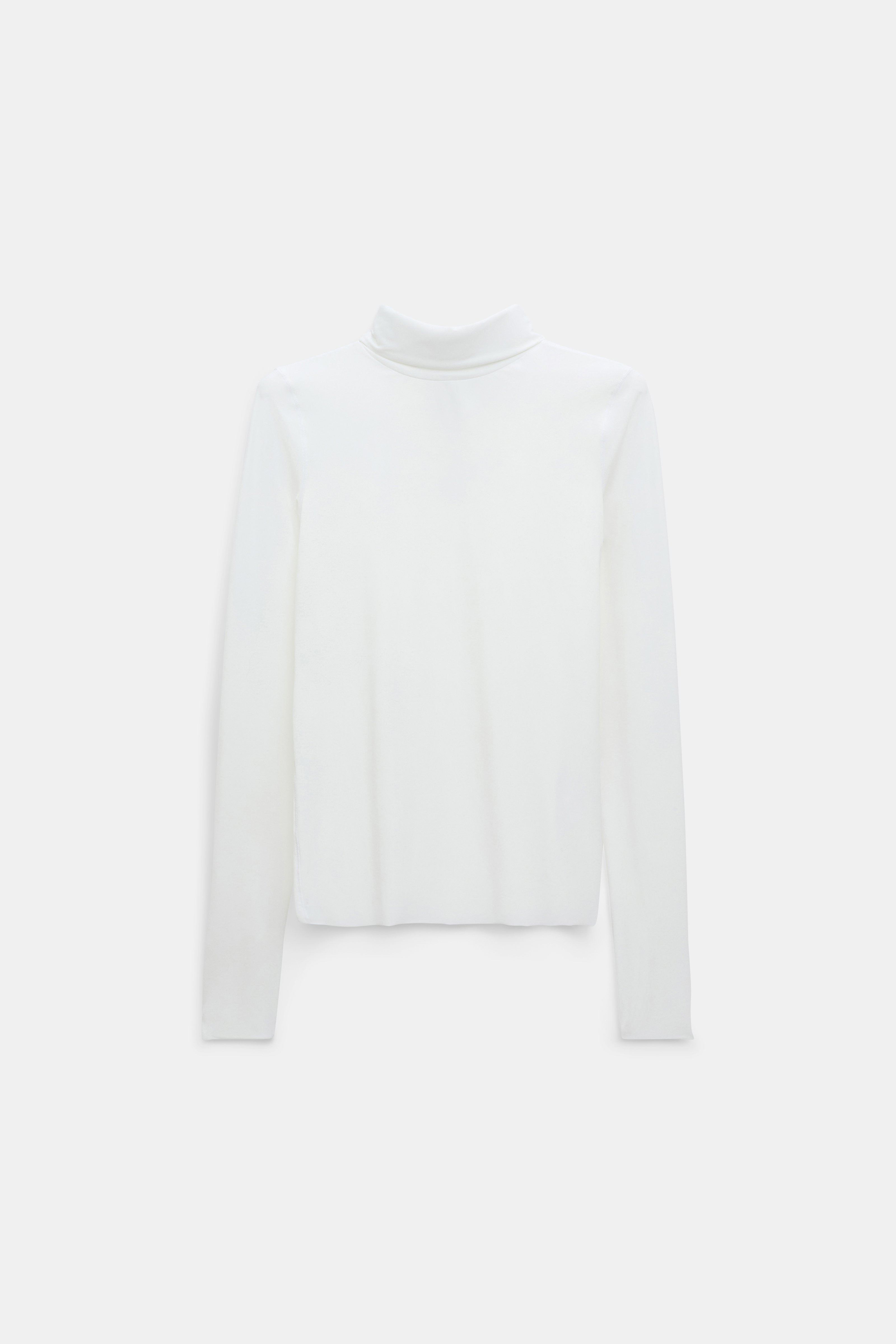 Love your layers: The turtleneck is made from technical jersey and has a barely-there feel on the skin. The top has raw finish edges. Material & Care - 75 % Polyamide, 25 % Elastane - Technical jersey long sleeve turtleneck - Lightweight technical jersey - Padded fold-down turtleneck - Fine overlock edges - Distressed edges - WE CARE - This item is finished according to OEKO-TEX® STANDARD 100, 22.0.98928 Hohenstein - Hand wash cold / Machine wash old - Wash with similar colors Size & Fit - Our model is 178cm tall and wears a size 2 - Fitted shoulders - Form-fitting